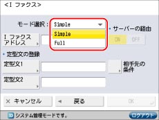 NTTコミュニケーションズのインターネットファクス中継サービスを利用する場合は、[Simple]を選択してください。これにより、読み込まれたデータがファクスへ転送されます。なお、このサービスを利用するには、NTTコミュニケーションズとの契約が必要です。詳しくはNTTコミュニケーションズにお問い合わせください。