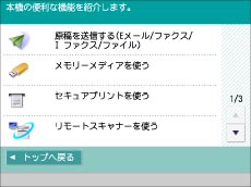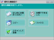 メインメニュー画面から[便利な機能紹介]を押すと、本製品の便利な機能を紹介する画面が表示されます。