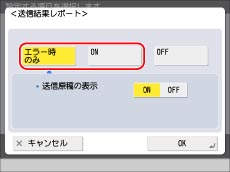FAXボードを装着しているかリモートFAX送信キットを有効にしている場合は、ファクスに送信したときの送信結果がプリントされます。また、[ファンクション設定](設定/登録)の[ファクス送信結果レポート]を「エラー時のみ」または「ON」に設定している場合は、送信結果レポートとともに、ファクス送信結果レポートもプリントされます。(→ファクス送信結果レポート/ファクスエラー送信結果レポート)