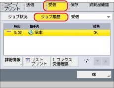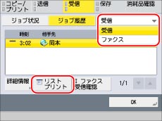 ファクス通信管理レポートの受信履歴をプリントする場合は、ドロップダウンリストで[ファクス]を選択します。(→ファクス通信管理レポート)