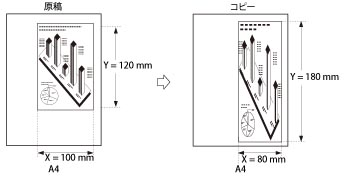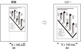 原稿から拡大/縮小してコピーします。自動で倍率を計算させることもできます。