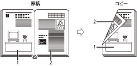 ブック原稿の左右または、表裏ページを1枚の用紙の表裏にコピーします。