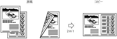 2枚の原稿や1枚の両面原稿を片面1枚分の用紙サイズに縮小します。