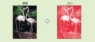 原稿がカラー原稿か白黒原稿かを認識して、自動的にモードを切り替えます。カラー原稿がセットされたときはフルカラーモードで、白黒原稿がセットされたときは白黒モードでコピーします。
