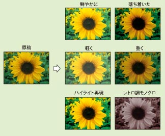 あらかじめ設定された色調整を選ぶことにより、コピーの色をワンタッチで変えることができます。