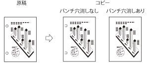 パンチ穴があいている原稿を、コピーしたときにできるパンチ穴の影を消してコピーします。
