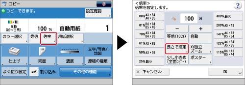 倍率(%)=(コピーサイズ(記録サイズ)(mm)/原稿サイズ(mm))×100