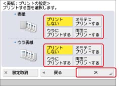 表紙、裏表紙で[プリントしない]を選択すると、手順3で選択した用紙カセットから表紙、裏表紙として用紙が給紙されます。