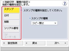 印字の種類に任意入力を選択したとき、入力した文字列は保存されません。[地紋印字]使用時に同じ文字列を印字したいときは、[登録]を押して文字列を登録してください。