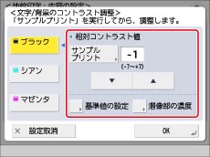 でそれぞれの色に最適な印字サンプルの値を相対コントラスト値として設定|