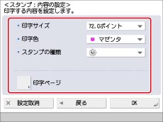 [ページ印字/スタンプの文字列登録]に登録されている文字列から選ぶこともできます。(→ページ印字/スタンプの文字列を登録/編集/削除する)