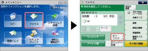 ハンドセット・G2をきちんと戻しておかないと、送信終了後に「ピロピロピロ・・・」という警告音(オフフックアラーム)が鳴ります。警告音は鳴らないようにも設定できます。(→オフフックアラームを有効にする)