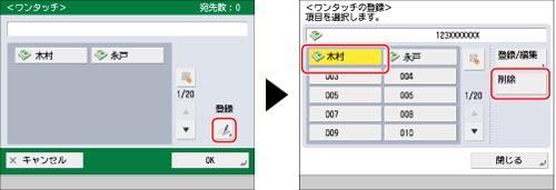ワンタッチボタンに登録した宛先は、ローカルアドレス帳にも表示されます。
