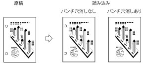 パンチ穴があいている原稿を、読み込みしたときにできるパンチ穴の影を消せます。