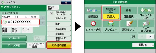 発信人の名称は、発信元記録として相手先の記録紙にプリントできます。