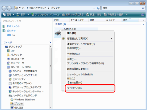 ](スタート)→[コントロールパネル]→[プリンタ]をクリック