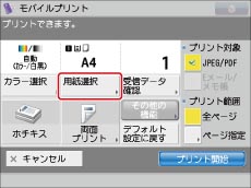 モバイルプリント機能で使用できる用紙の種類は、普通紙1、再生紙、色紙です。