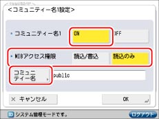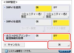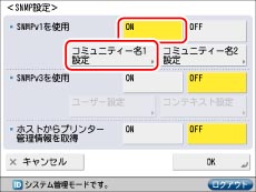 キヤノン製のドライバーやユーティリティーソフトウェアを使用する場合は、<SNMPv1を使用>と[専用ポート設定]を両方とも「ON」にしてください。
