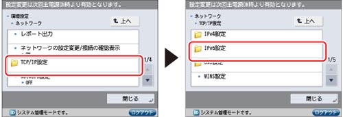 [TCP/IP設定]→ [IPv6設定]を押す