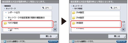 [TCP/IP設定]→[DNS設定]を押す