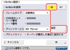 NetWareを使用しないときは、<NetWareを使用>の[OFF]を押します。