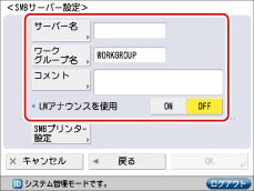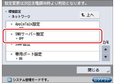 SMBサーバーを使用しないときは、<SMBサーバーを使用>の[OFF]を押します。