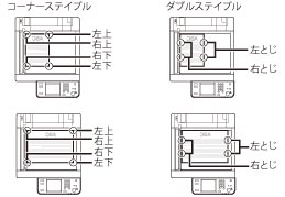 ホチキスできる用紙の枚数は、A3、B4、A4Rの場合は30枚、A4、B5の場合は50枚までです(表紙含む)。