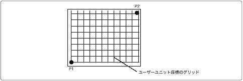 X、Yの最小値をスケーリングポイントP1の座標値X、Yに割り当て、1ユーザーユニットの単位をプロッターユニットをもとに設定します。P2の座標値は関係しません。