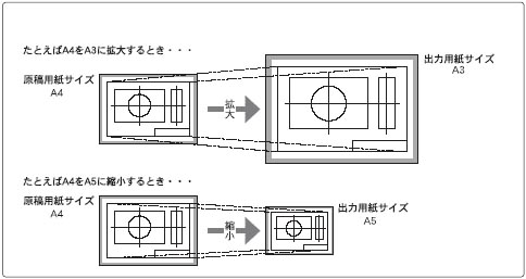 自動モードでは、拡大率や縮小率を計算することなく、出力用紙サイズを指定するだけで拡大/縮小が行えます。