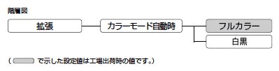 この設定項目は、カラープリンターを使用している場合のみメニューに追加表示されます。また、共通メニューで「カラーモード」を[カラー]または[白黒]に設定している場合は、本設定は無効になります。