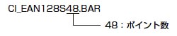 iRシリーズ/imagePRESSシリーズ/imageRUNNER ADVANCEシリーズに内蔵されているEAN-128は、48ポイントのサイズでの出力に適しています。48ポイント以外のサイズで出力したバーコードの読み取りは保証しません。