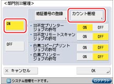 (状況確認/中止)を押したあと、[消耗品確認]→[カウント確認]を押してカウント情報を確認することもできます。 |