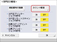 を長押しすると、ページ番号が増減し、キーを離した時点のページが表示されます。部門IDが大量に登録されている場合に、すばやく目的の部門IDを表示させることができます。|