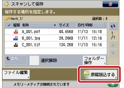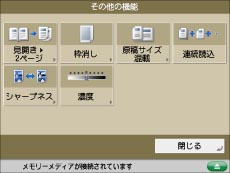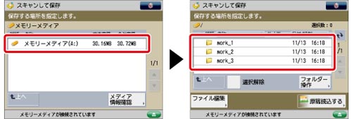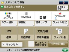 工場出荷時は、メモリーメディアの表示が「OFF」に設定されています。メモリーメディアを利用するには、[保存先の表示設定]を「ON」に設定してください。(→保存先の表示を設定する)