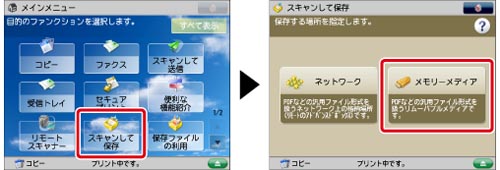 メモリーメディアを選択→保存先となる階層を選択→[原稿読込する]を押す