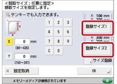 [任意に指定]を押す→[登録サイズ1]または[登録サイズ2]を選択