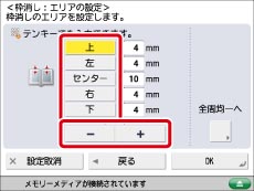 [センター][全周]の各キーを押す → [-][+]でそれぞれの枠消しする幅を設定