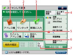 : Eメール : ファクス : Iファクス : ファイル : グループ : Bcc : Cc |