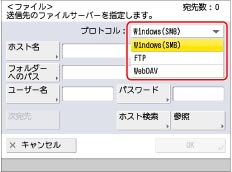 imagePASSが装着されている他のimageRUNNER ADVANCEシリーズのアドバンスドボックスに保存するときは、[WebDAV]を選択してください。(Windows(SMB)では送信できません。)