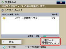 Iファクスの分割データの受信は、分割データを受信してから24時間を経過するとタイムアウトとなり受信できなくなります。タイムアウトの設定は、「受信トレイを設定する」を参照してください。