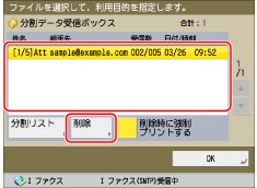 結合した分割データに対して転送やメモリー受信などを設定しているときに、分割データを削除した場合は、強制プリントした画像に対して設定している動作を行いません。