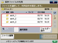 フォルダーにファイルが2つ以上保存されているときには、[名称]、[日付/時刻]を押して、保存されているファイルを並べ替えて表示できます。