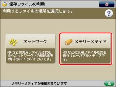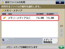 工場出荷時は、[保存先の表示設定]の<メモリーメディア>が「OFF」に設定されています。メモリーメディアを利用するには、<メモリーメディア>を「ON」に設定してください。(→保存先の表示を設定する)
