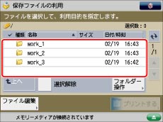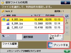 メモリーメディアにファイルが2つ以上保存されているときには、[名称]、[日付/時刻]を押して、保存されているファイルを並べ替えて表示できます。