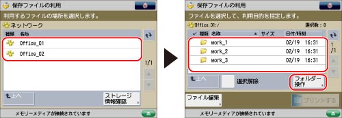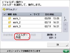 ストレージを選択→目的のフォルダーがある階層を選択→[フォルダー操作]を押す