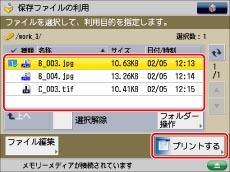 メモリーメディアに格納されているファイルをプリントするときを例に説明します。