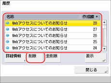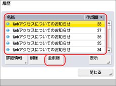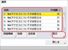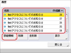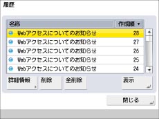 仕様設定の[履歴表示の制限]を「ON」に設定しているときは、履歴を表示することはできません。(→機能制限の設定をする)