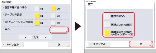 「標準CSSのみ」、「標準CSS+Style属性」、「標準CSS+Style属性+外部インポートCSS」のいずれかを選択できます。