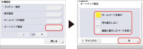 オートクリアについては、「オートクリア移行時間を設定する」を参照してください。
