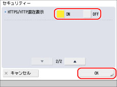 「OFF」に設定した場合は、HTTPS/HTTP混在ページ内のHTTPSで指定されたコンテンツのみ表示されます。